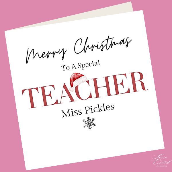 🍎 Personalised Merry Christmas Card for a Special Teacher